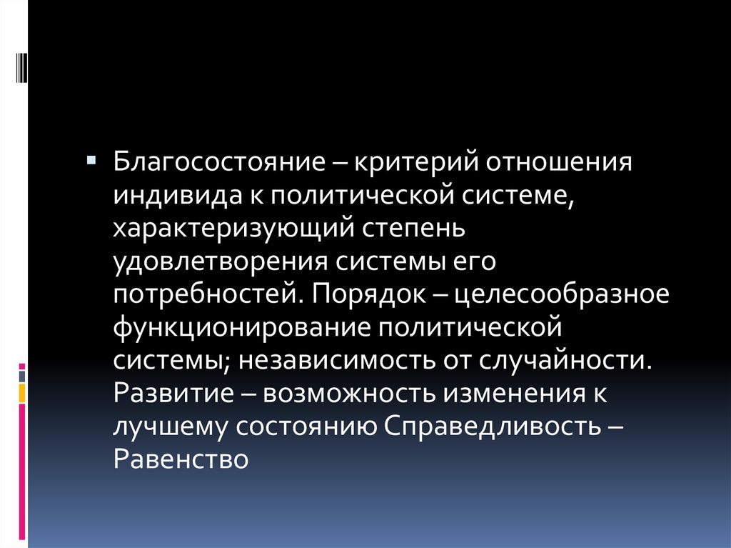 Благосостояние – критерий отношенияиндивида к политической системе,