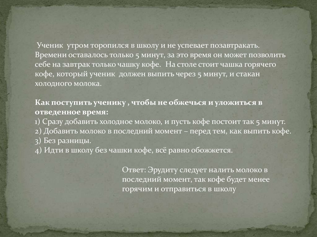 Как поступить ученику , чтобы не обжечься и уложиться в