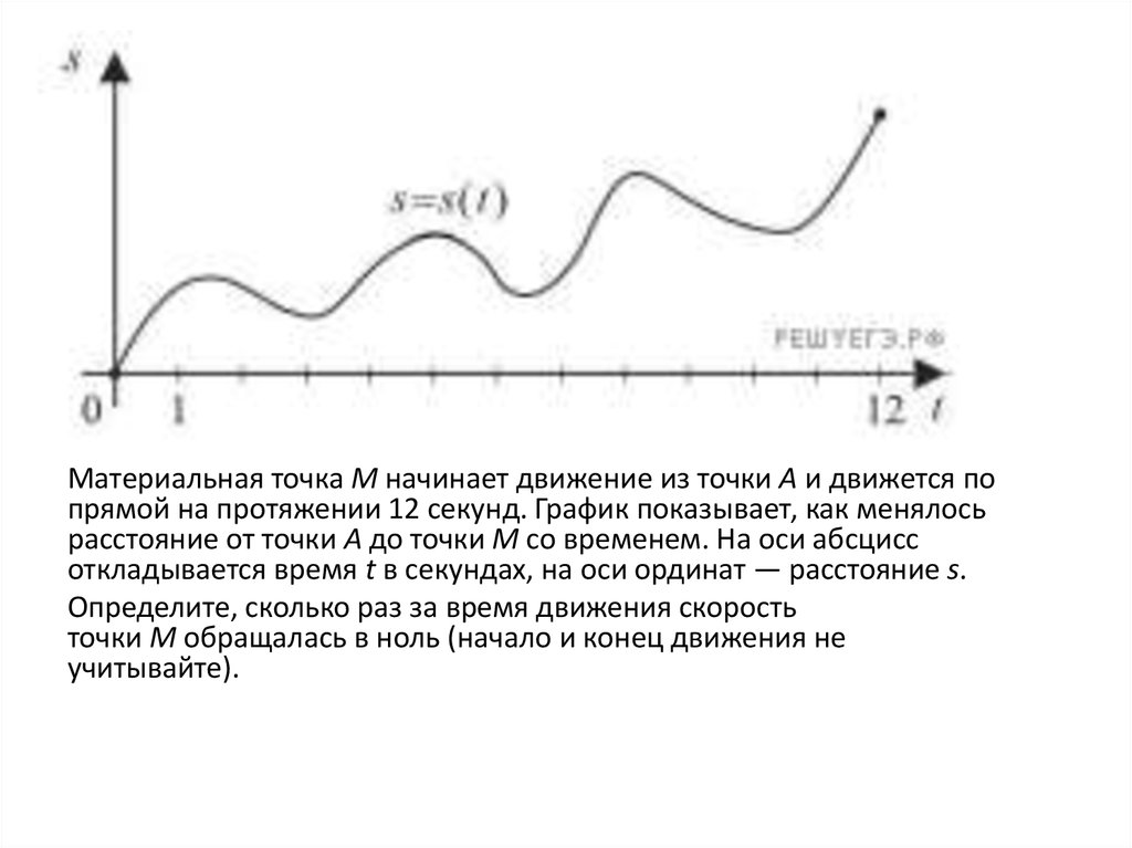 Материальная точка M начинает движение из точки A и движется попрямой на протяжении 12 секунд. График показывает, как менялось