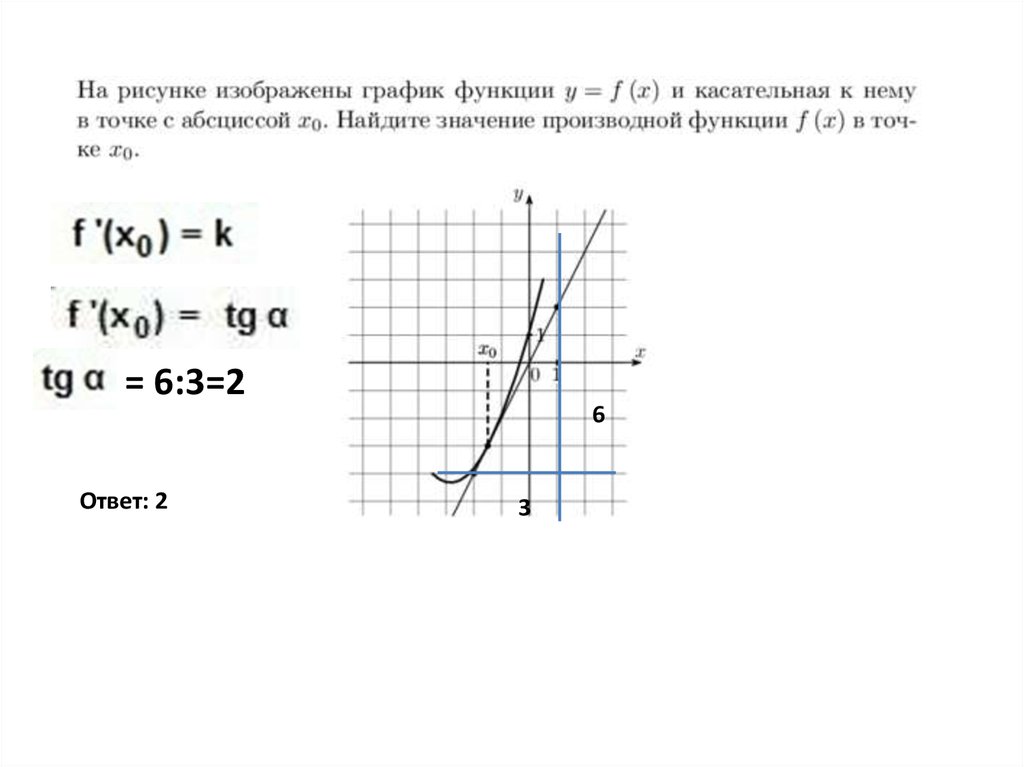 • Производная функции в точке x0 равна тангенсу
