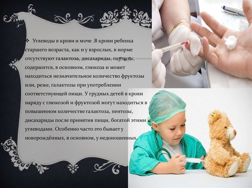 Углеводы в крови и моче .В крови ребенкастаршего возраста, как и у взрослых, в норме