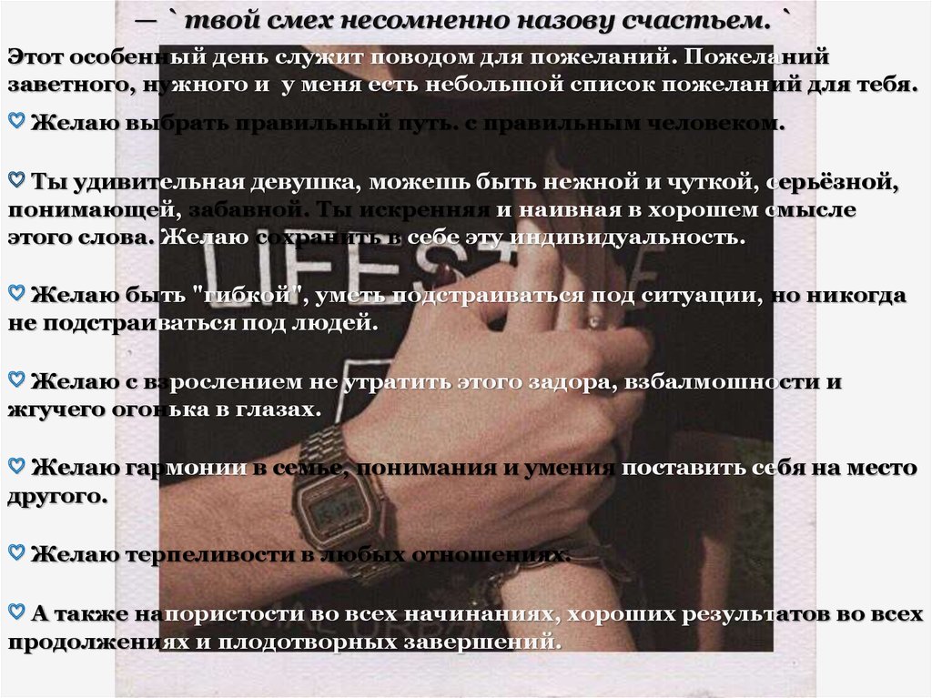 — ` твой смех несомненно назову счастьем. `Этот особенный день служит поводом для пожеланий. Пожеланий