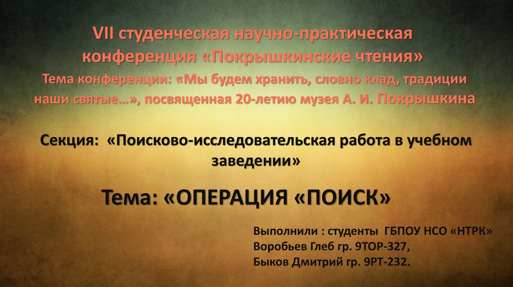 Тема: «ОПЕРАЦИЯ «ПОИСК»