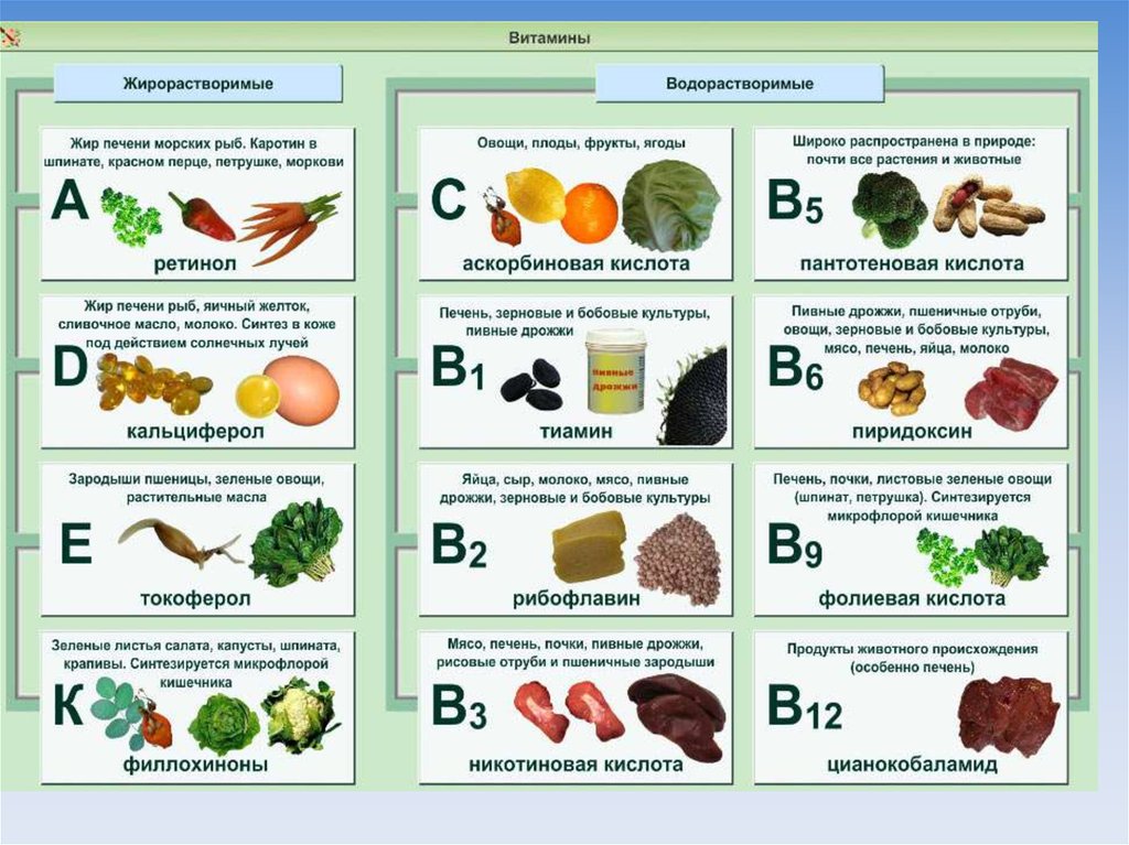 Простые и сложные углеводы, белок, клетчатка, витамины группы В.Витамины группы В ответственны за правильное функционирование