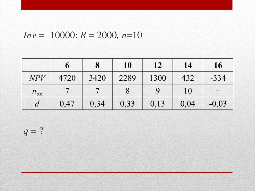 Внутренняя норма доходности (q) – ставка, прикоторой вложения только окупаются, т.е.