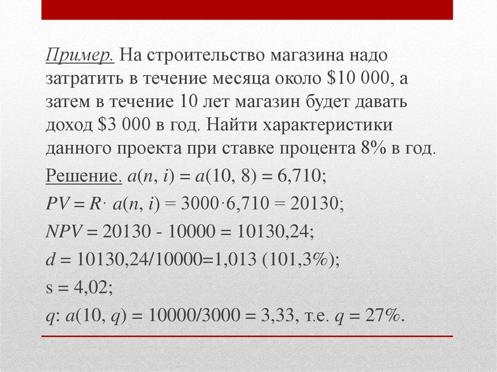 Пример. На строительство магазина надозатратить в течение месяца около $10 000, а