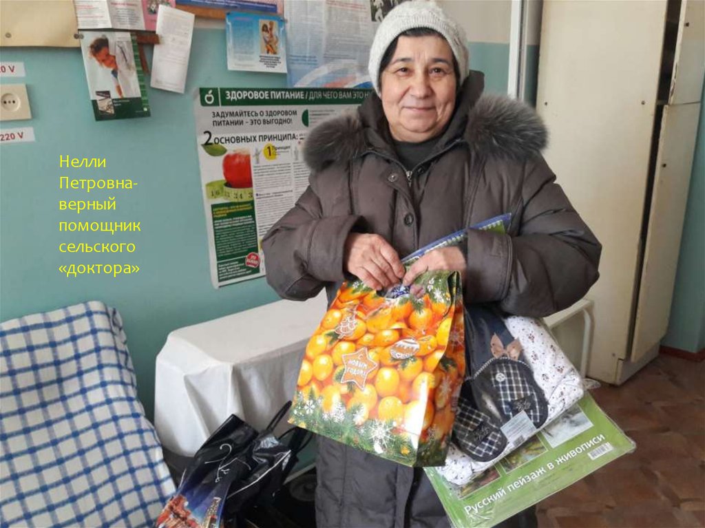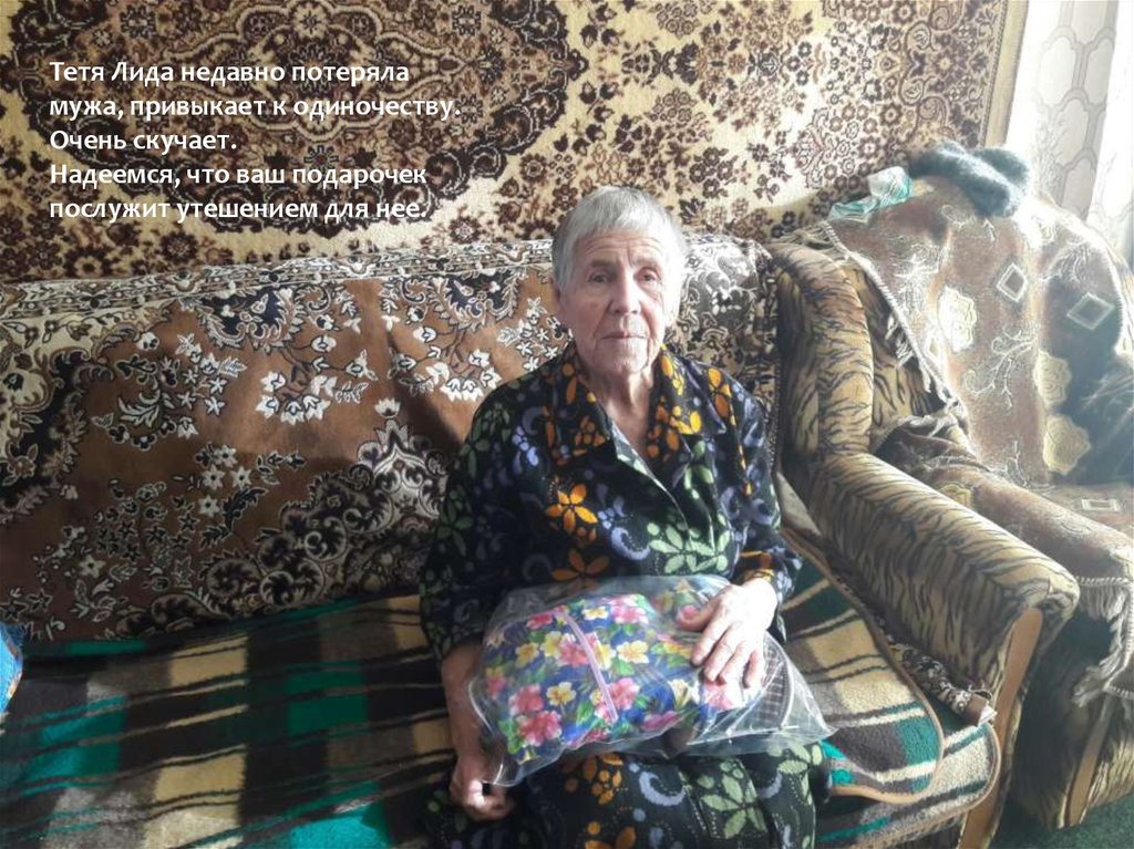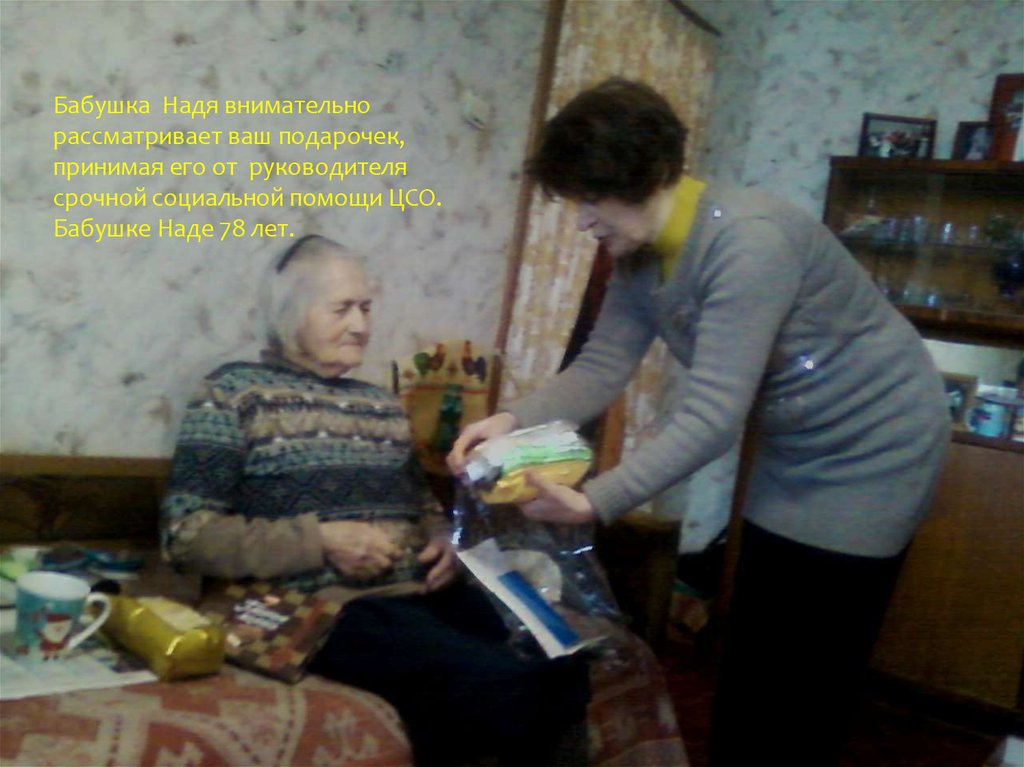 Бабушка Надя внимательнорассматривает ваш подарочек,