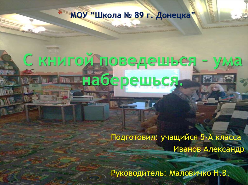 1. МОУ “Школа № 89 г. Донецка” С книгой поведешься – ума наберешься.