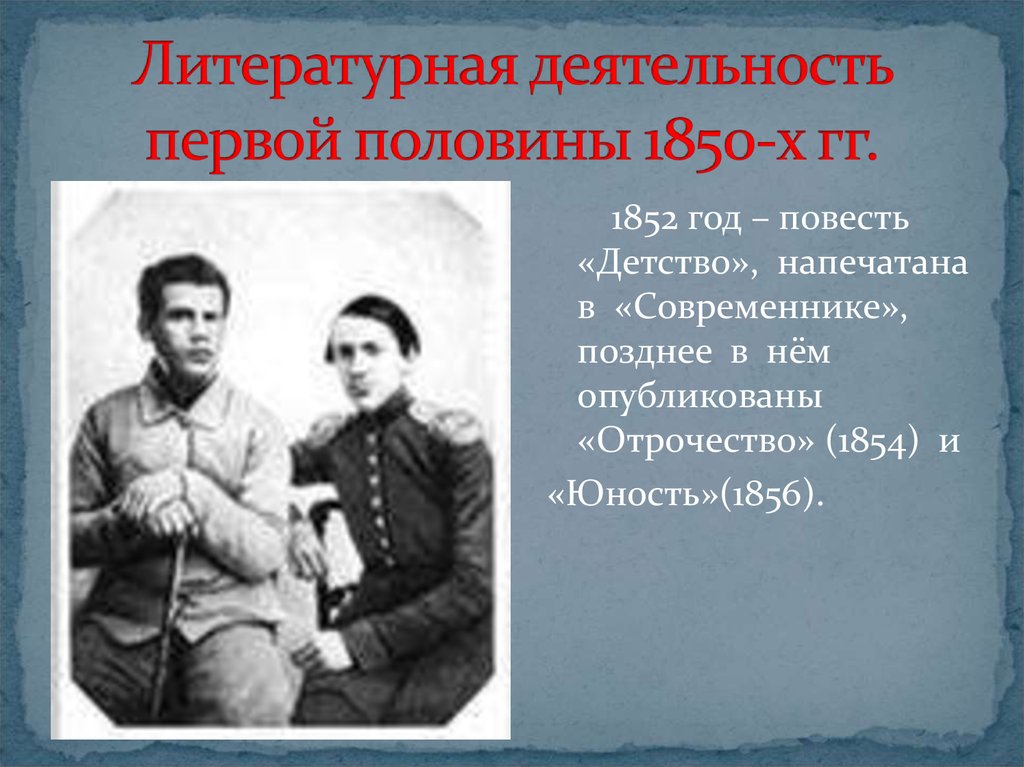 1852 год – повесть«Детство», напечатана