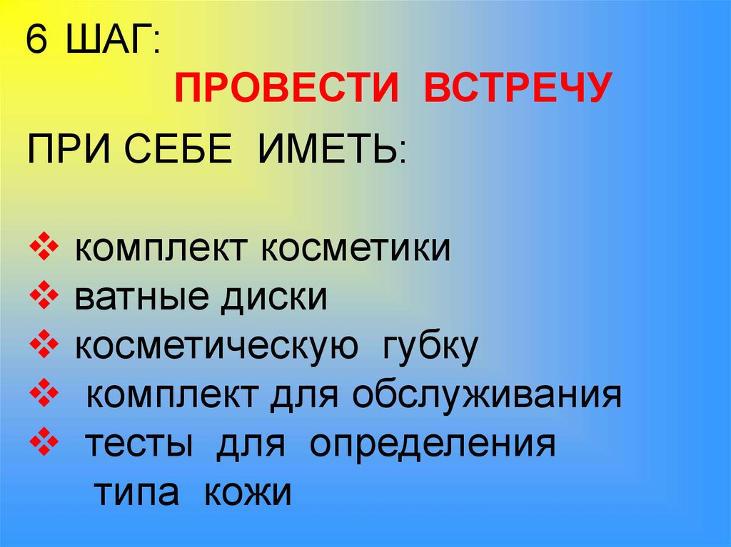 6 ШАГ:ПРОВЕСТИ ВСТРЕЧУ