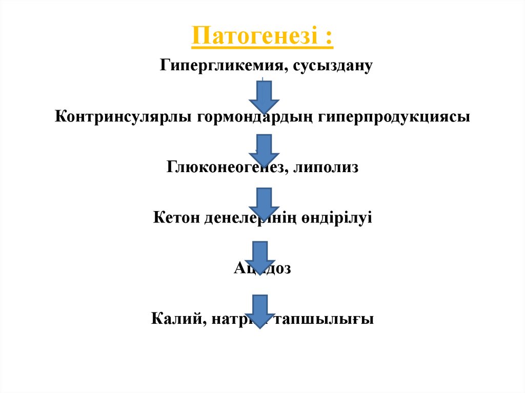 Патогенезі :Гипергликемия, сусыздану