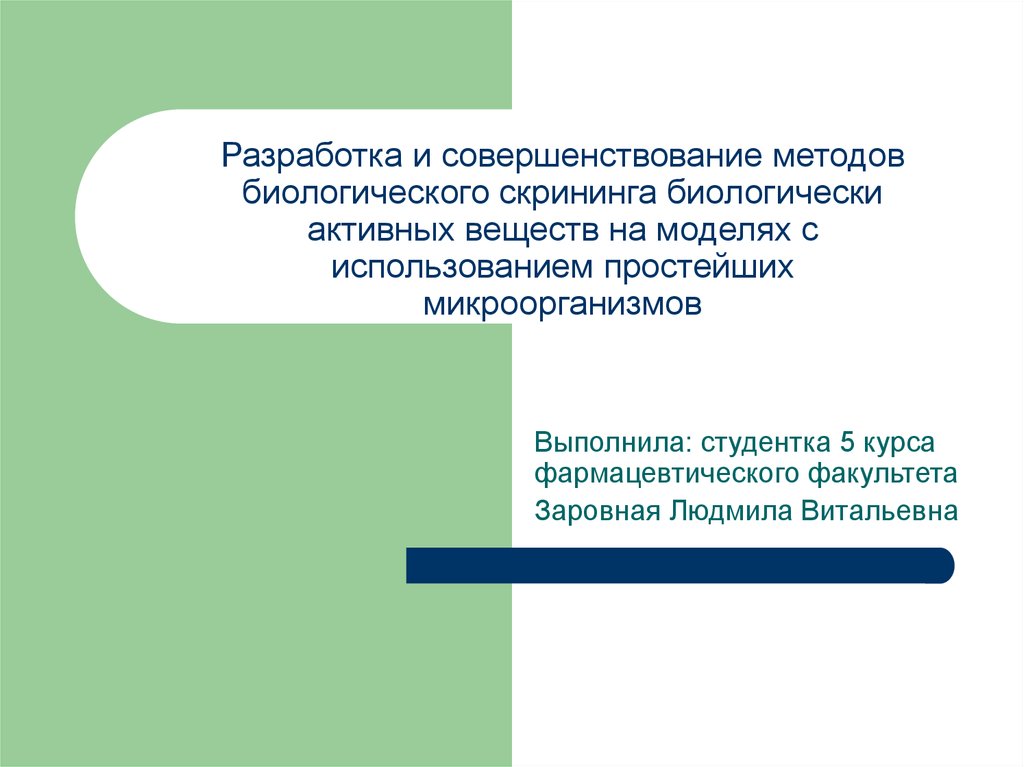 Разработка методов биологического скрининга биологически активных веществ с использованием простейших микроорганизмов