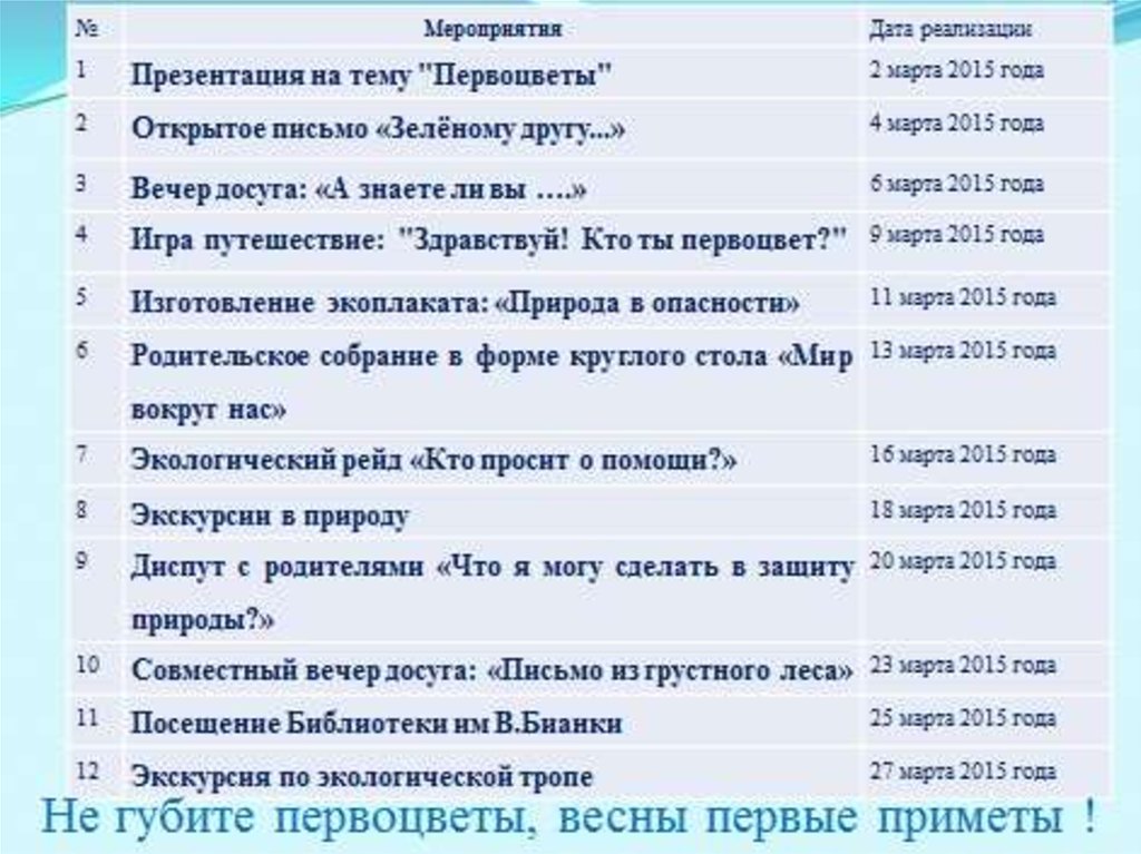 Реализация экологического проекта «Первоцветы»
