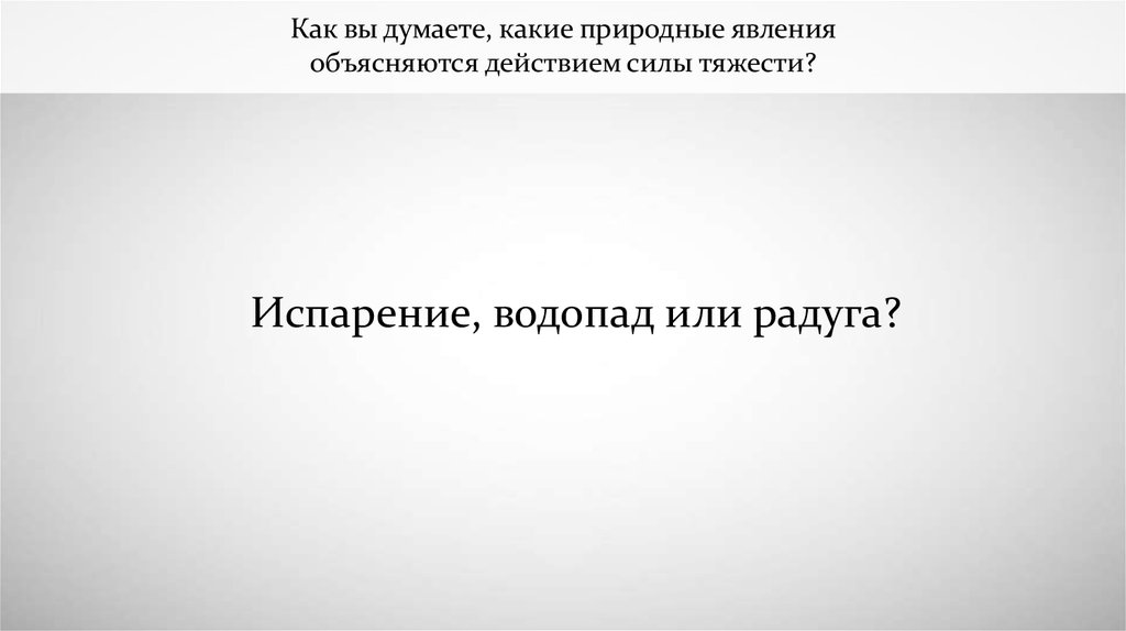 Как вы думаете, какие природные явленияобъясняются действием силы тяжести?