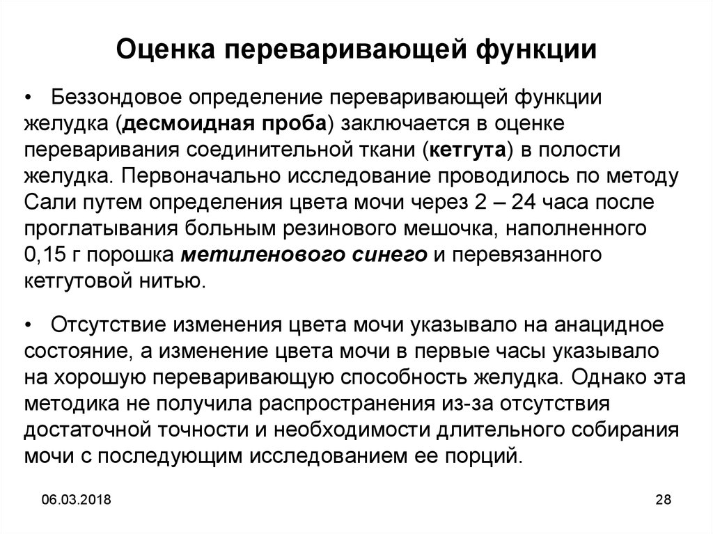 Оценка переваривающей функции• Беззондовое определение переваривающей функции
