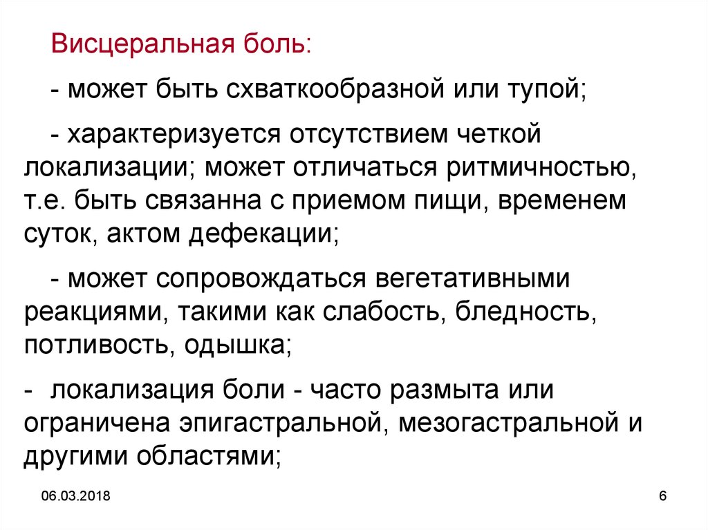 Висцеральная боль:- может быть схваткообразной или тупой;