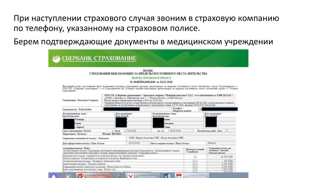 При наступлении страхового случая звоним в страховую компаниюпо телефону, указанному на страховом полисе.