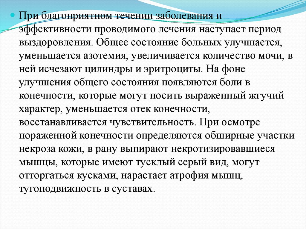 При благоприятном течении заболевания иэффективности проводимого лечения наступает период