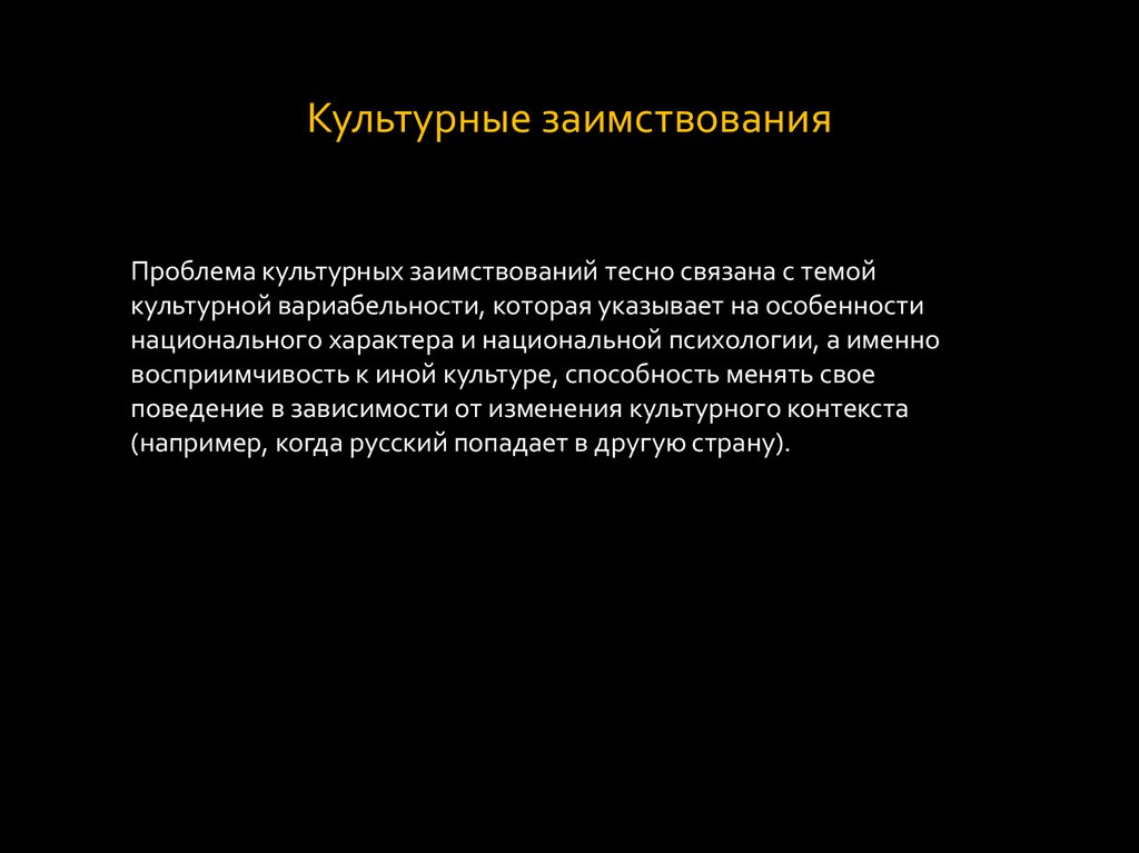 Культурные заимствованияПроблема культурных заимствований тесно связана с темой
