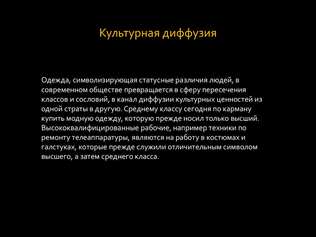 Культурная диффузияОдежда, символизирующая статусные различия людей, в