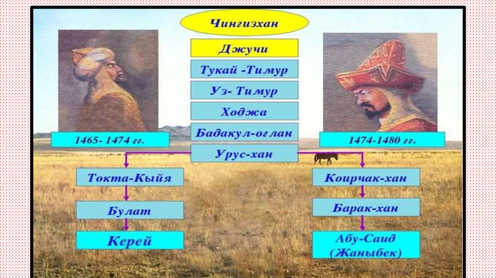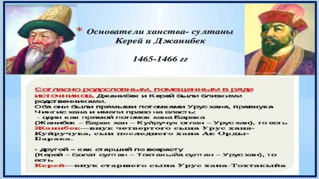 3. Кто же такие Жанибек и Керей? Жанибек был сыном хана Барака. И оба они — внуки хана Уруса, правнука Чингисхана. Так, что
