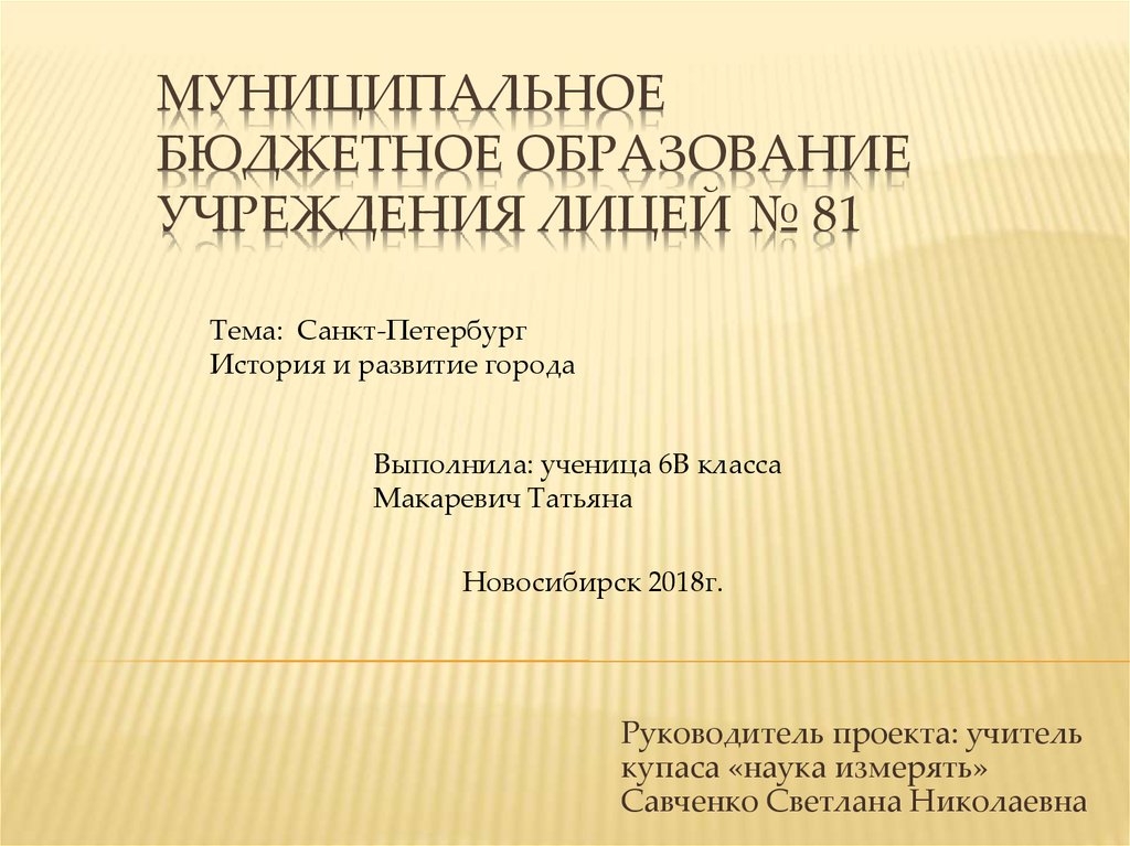 1. Муниципальное бюджетное образование учреждения Лицей № 81