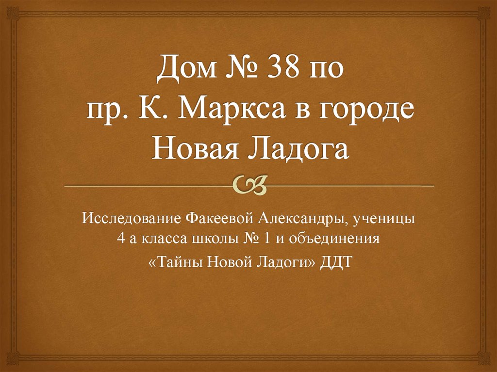 1. Дом № 38 по пр. К. Маркса в городе Новая Ладога