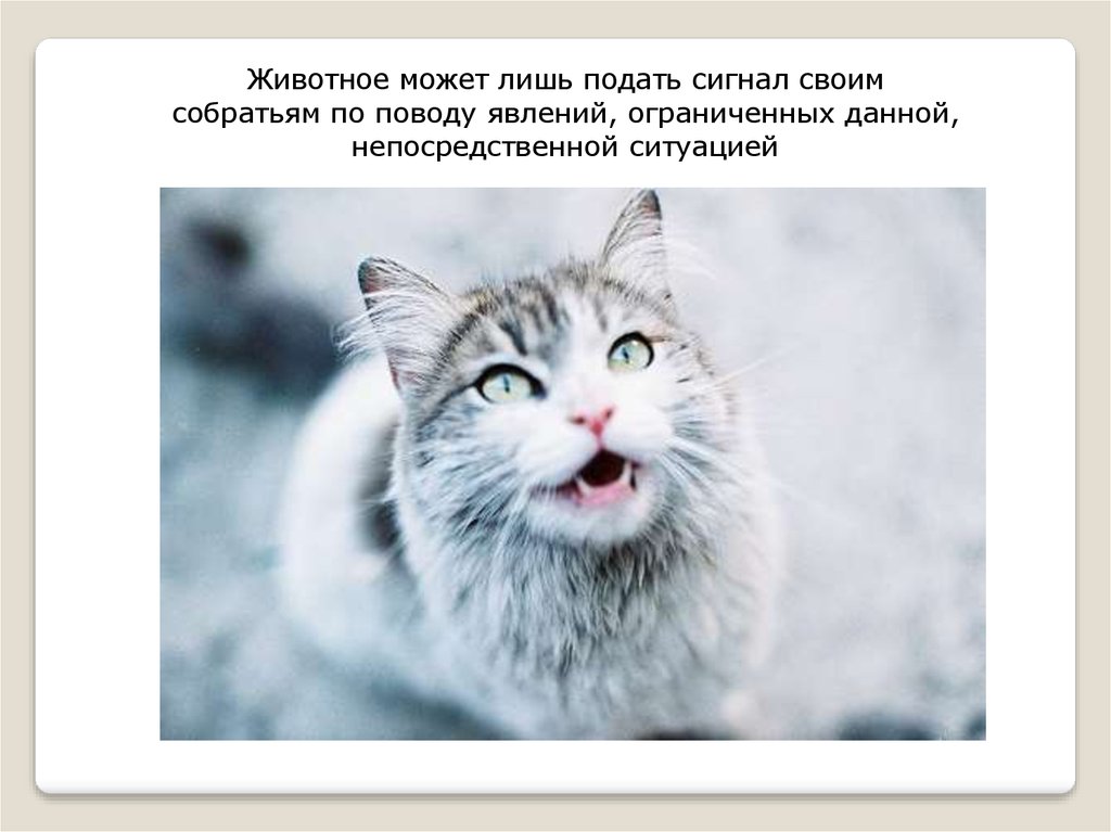 Животное может лишь подать сигнал своимсобратьям по поводу явлений, ограниченных данной,