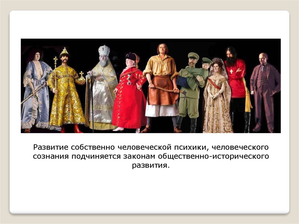 Развитие собственно человеческой психики, человеческогосознания подчиняется законам общественно-исторического