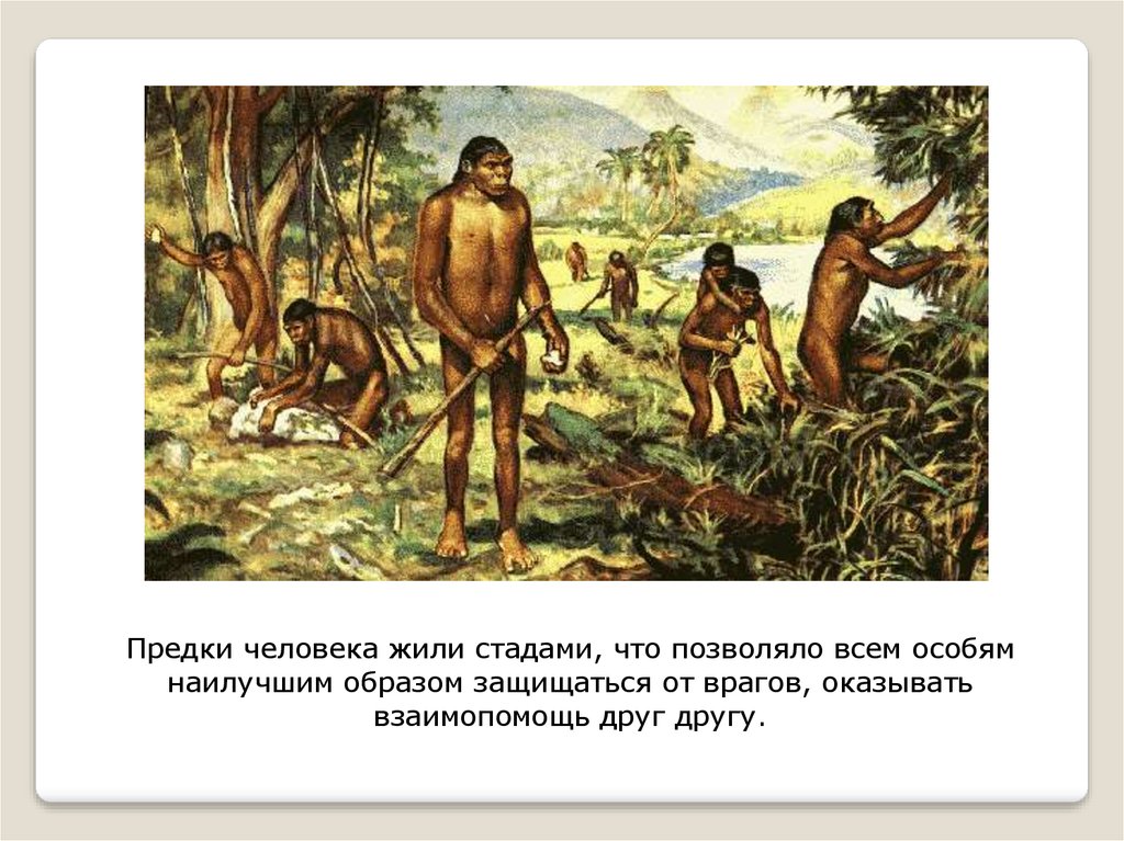 Предки человека жили стадами, что позволяло всем особямнаилучшим образом защищаться от врагов, оказывать