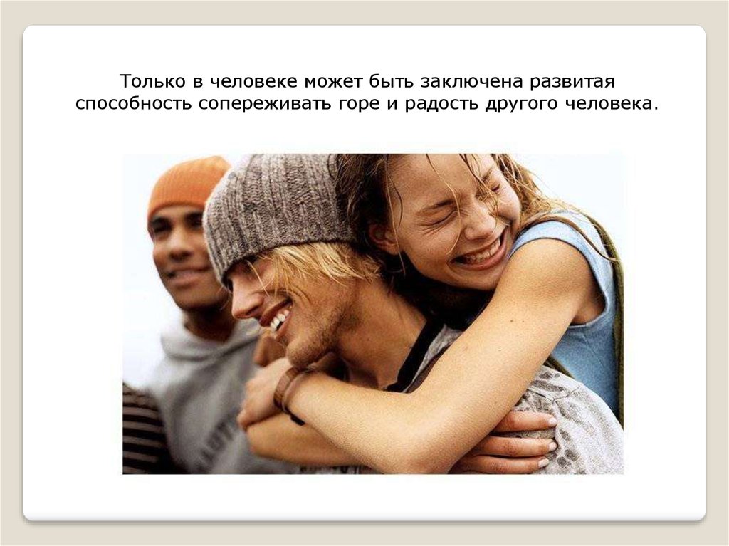 Только в человеке может быть заключена развитаяспособность сопереживать горе и радость другого человека.