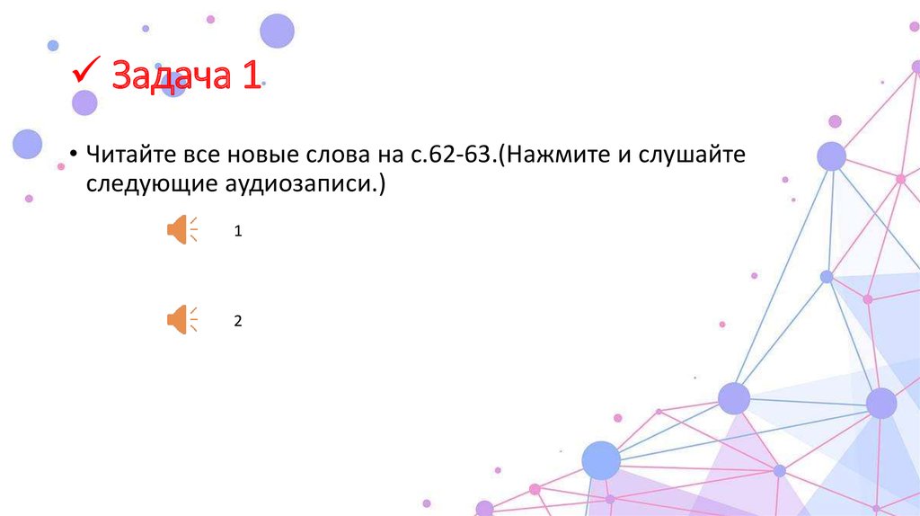 Задача 1• Читайте все новые слова на с.62-63.(Нажмите и слушайте