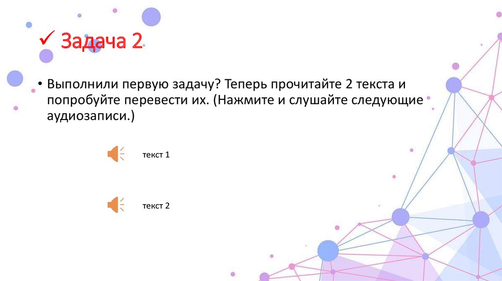 Задача 2• Выполнили первую задачу? Теперь прочитайте 2 текста и