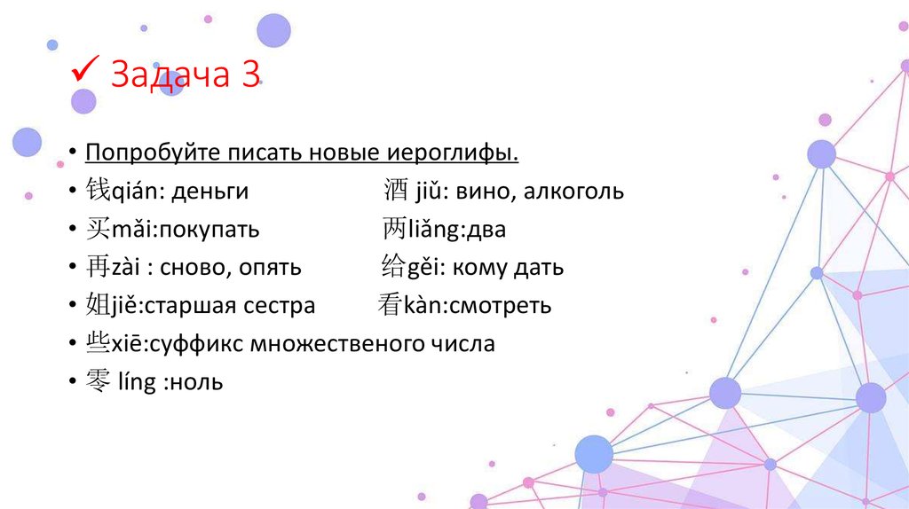 Задача 3• Попробуйте писать новые иероглифы.
