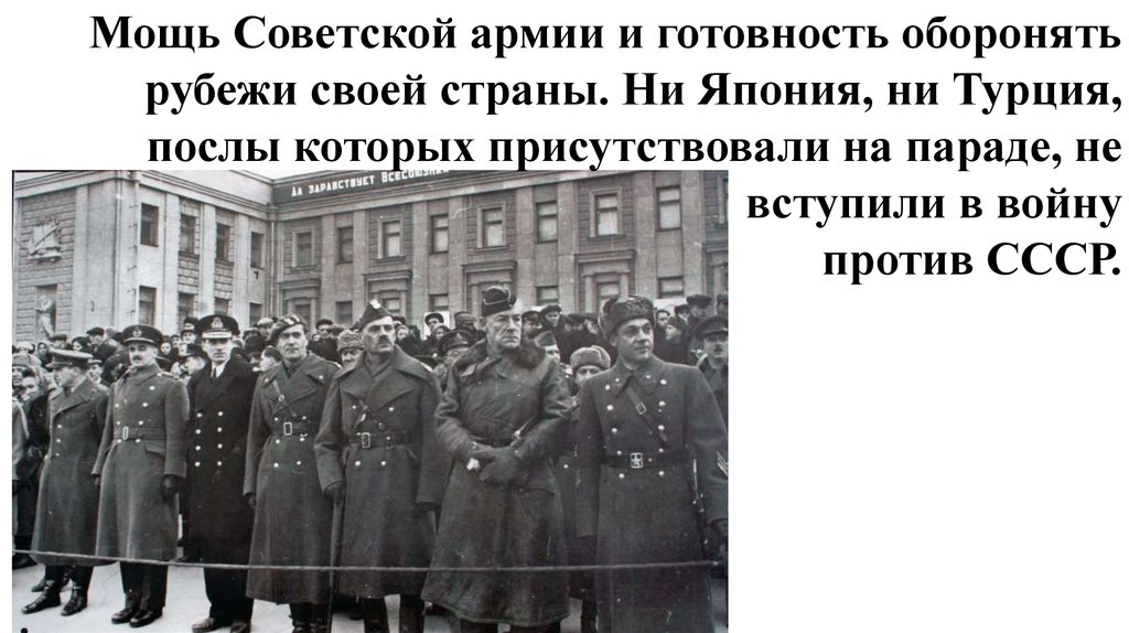 Мощь Советской армии и готовность оборонятьрубежи своей страны. Ни Япония, ни Турция,