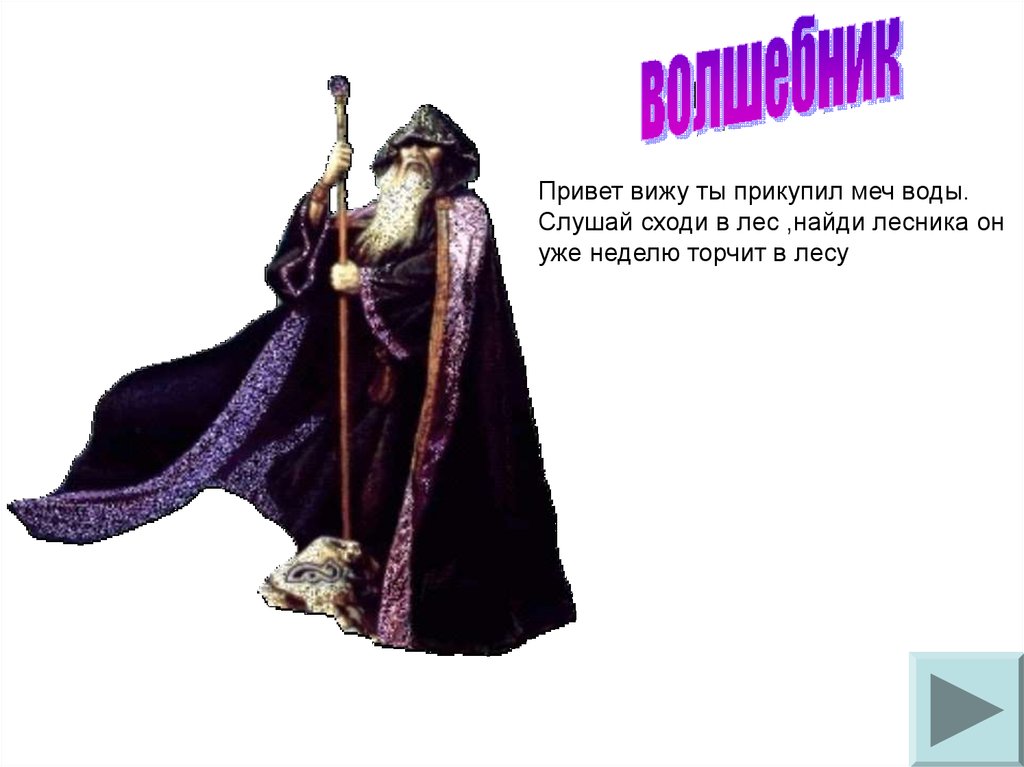 Привет вижу ты прикупил меч воды.Слушай сходи в лес ,найди лесника он