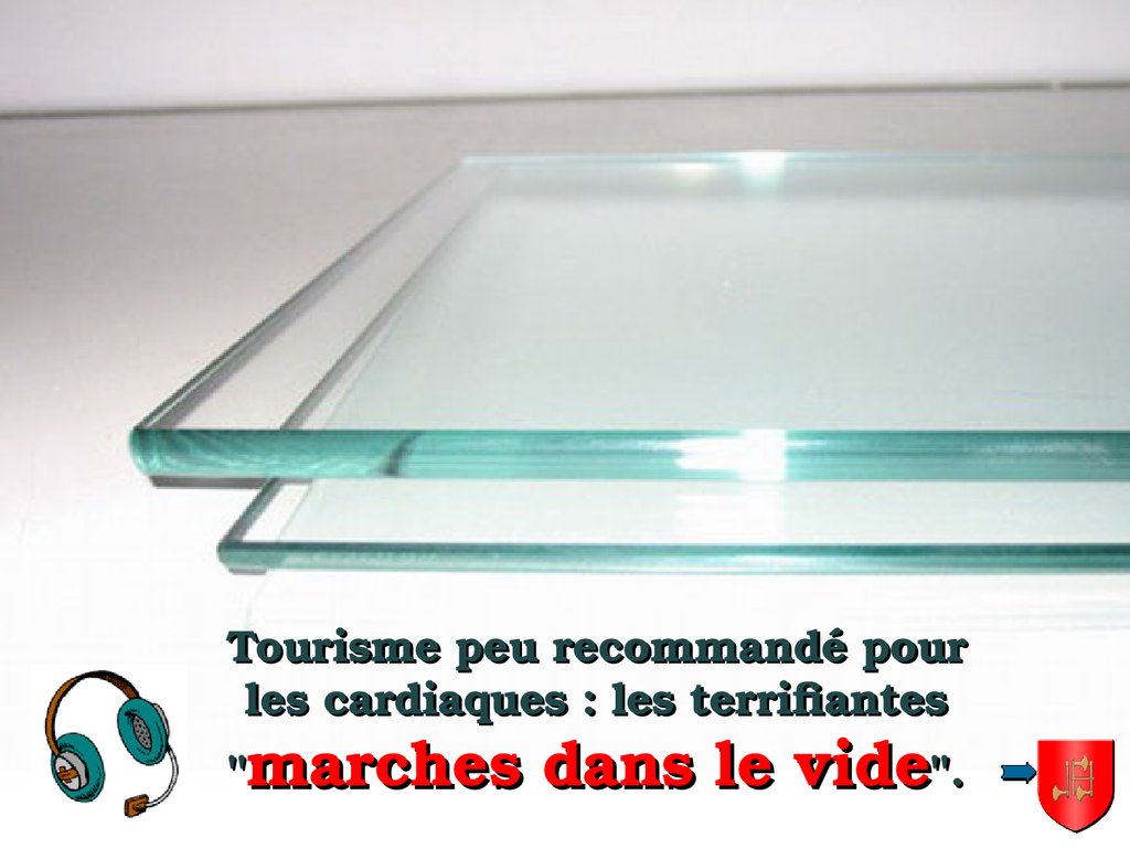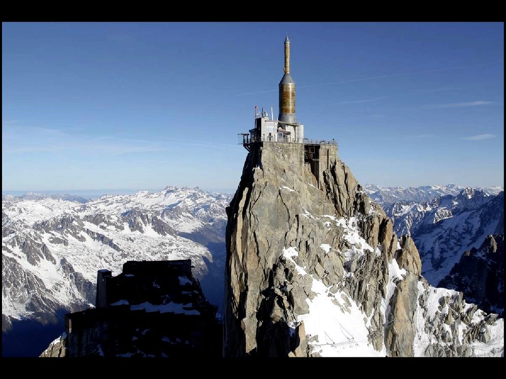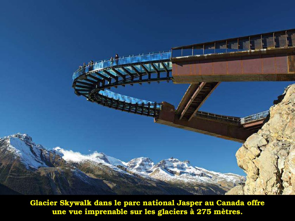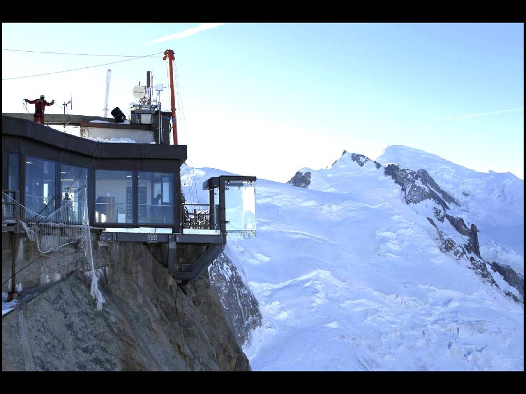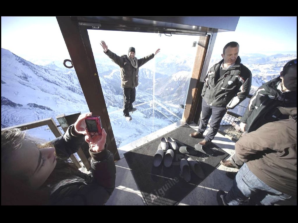 Ce plancher de verre au Mont Blanc, (France) permet de marcher à914 mètres au-dessus du vide. Il ne possède aucune armature de