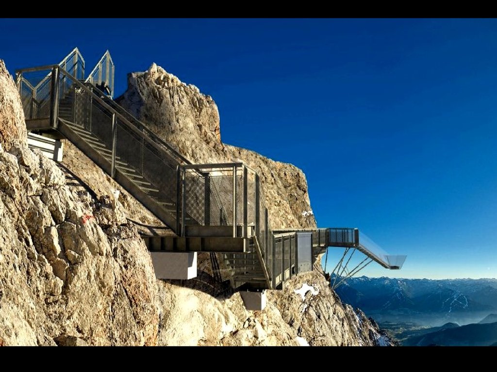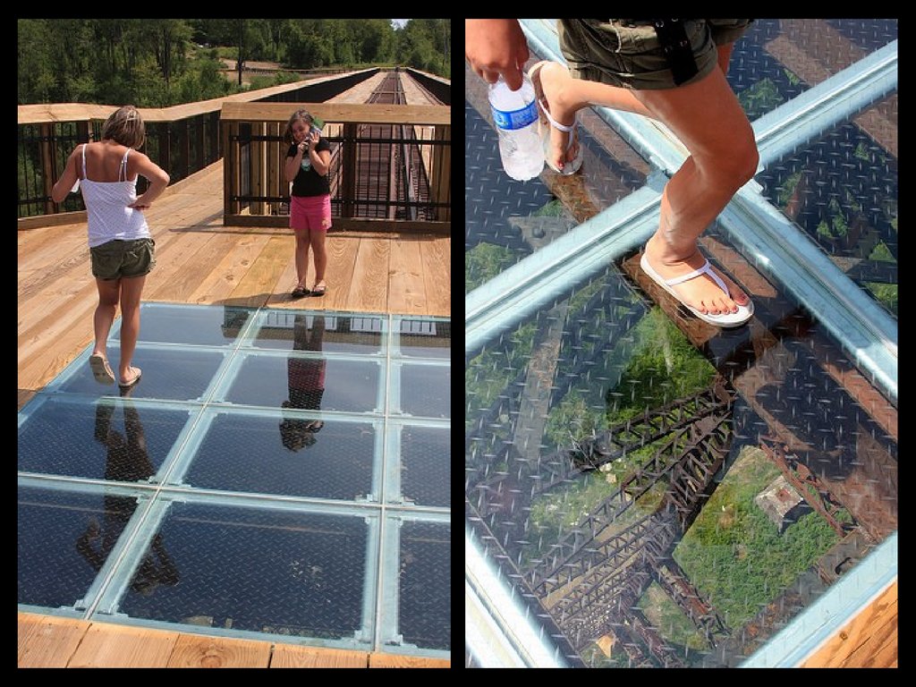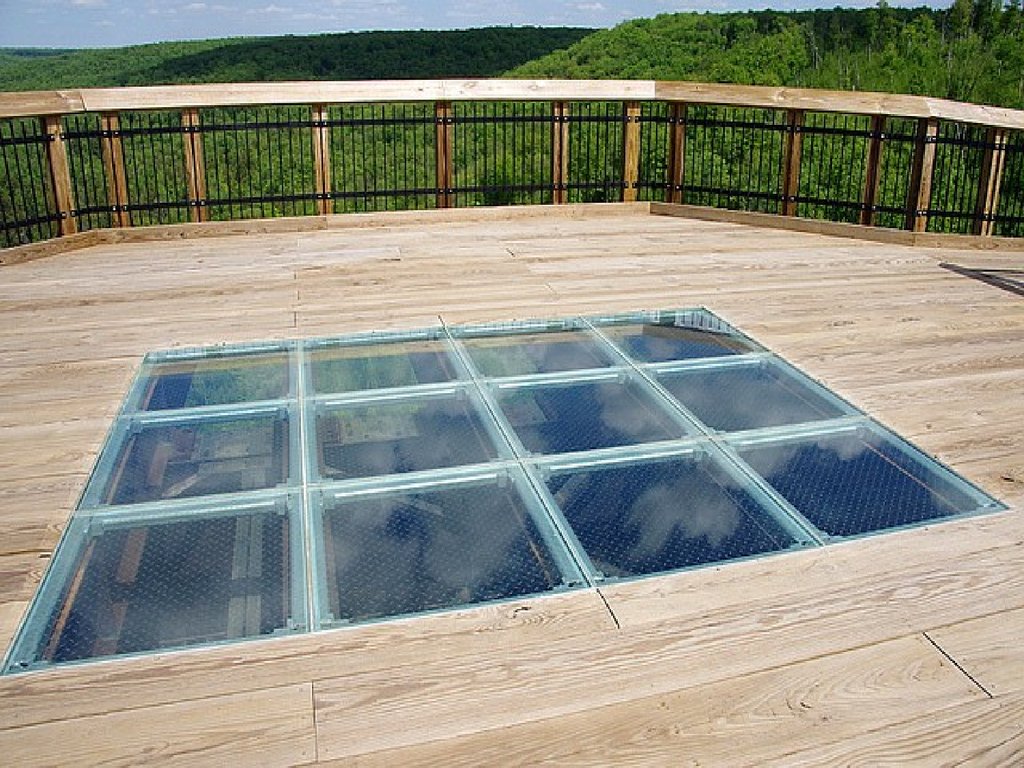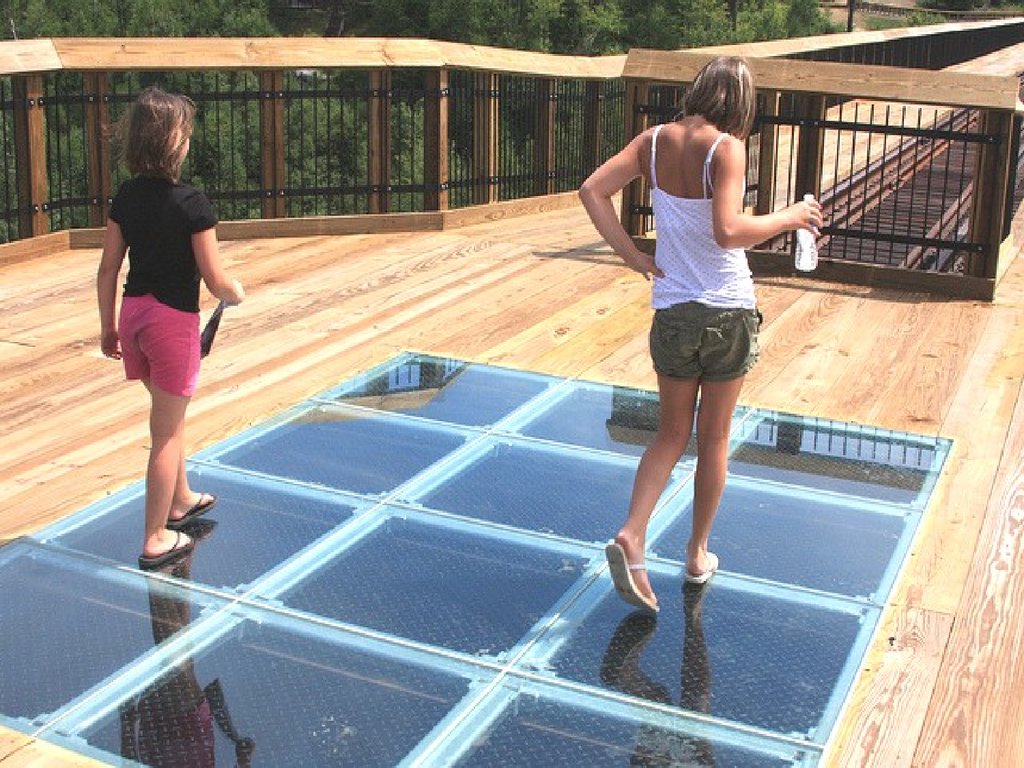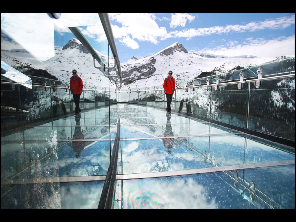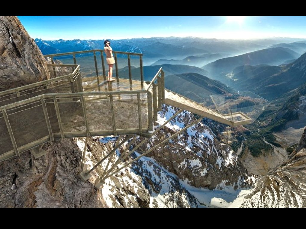 Ce plancher de verre au Mont Blanc, (France) permet de marcher à914 mètres au-dessus du vide. Il ne possède aucune armature de
