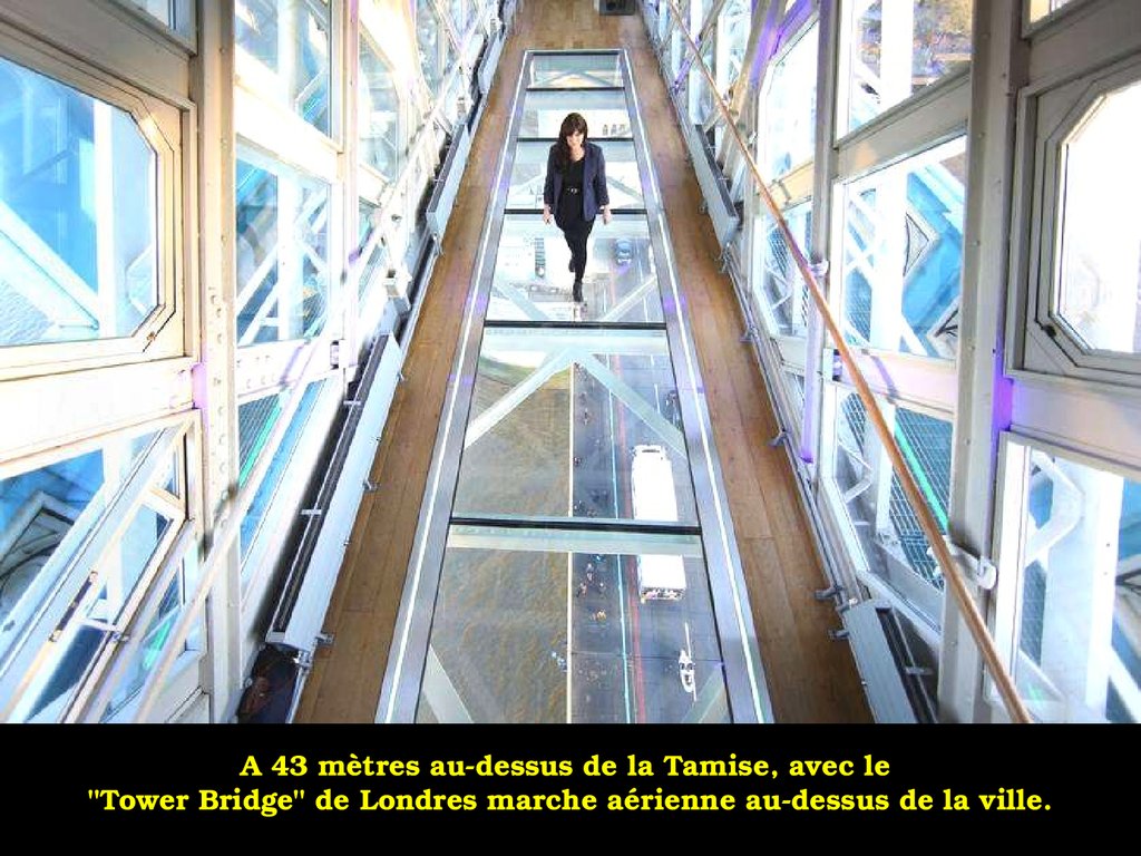 A 43 mètres au-dessus de la Tamise, avec le"Tower Bridge" de Londres marche aérienne au-dessus de la ville.