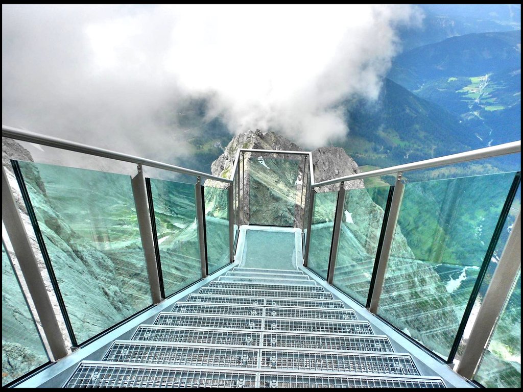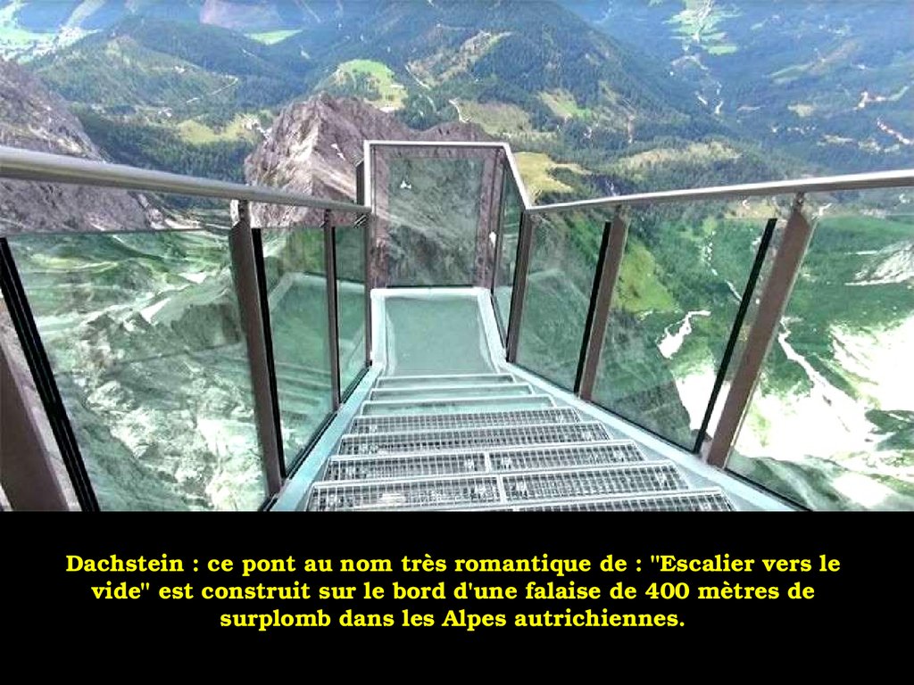 Dachstein : ce pont au nom très romantique de : "Escalier vers levide" est construit sur le bord d'une falaise de 400 mètres de