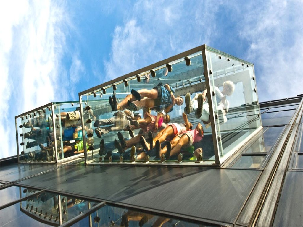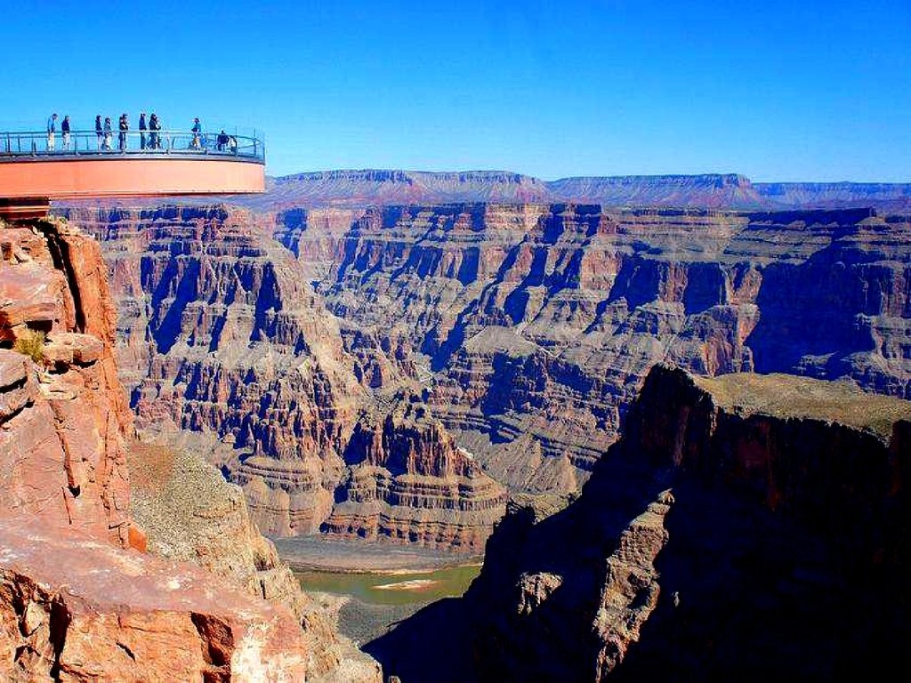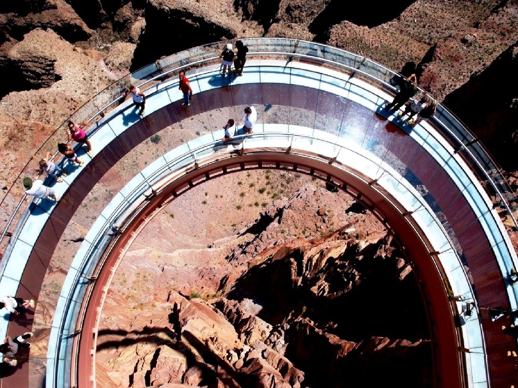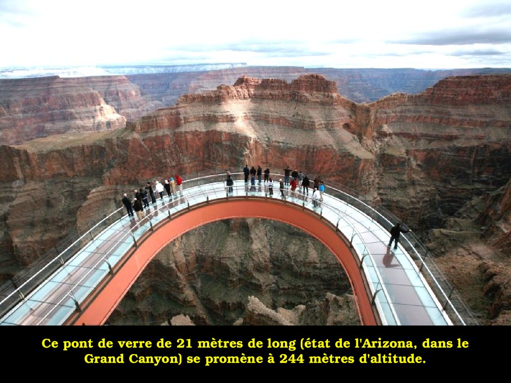 Ce pont de verre de 21 mètres de long (état de l'Arizona, dans leGrand Canyon) se promène à 244 mètres d'altitude.