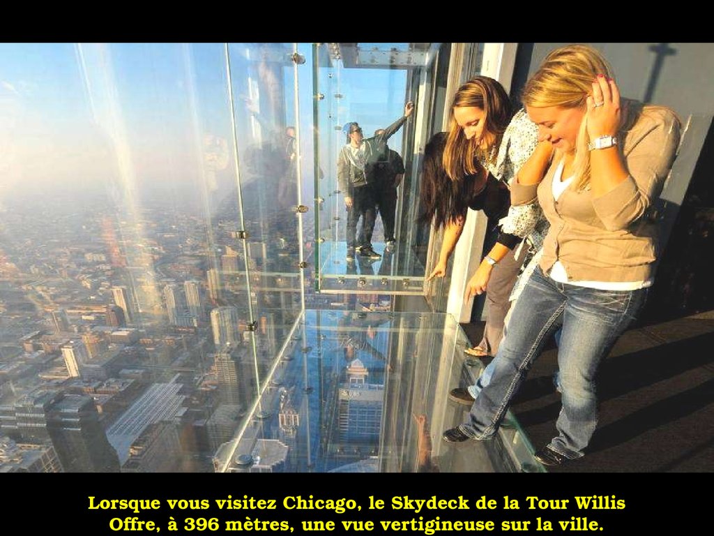 Lorsque vous visitez Chicago, le Skydeck de la Tour WillisOffre, à 396 mètres, une vue vertigineuse sur la ville.