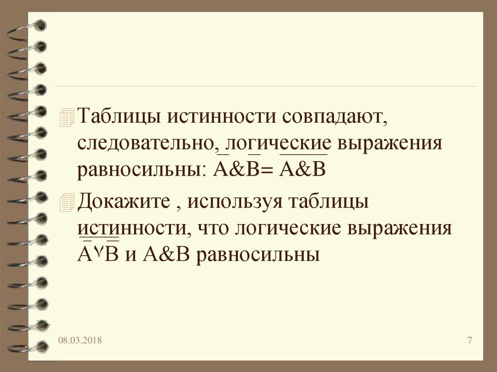 равносильны: A&B= A&B