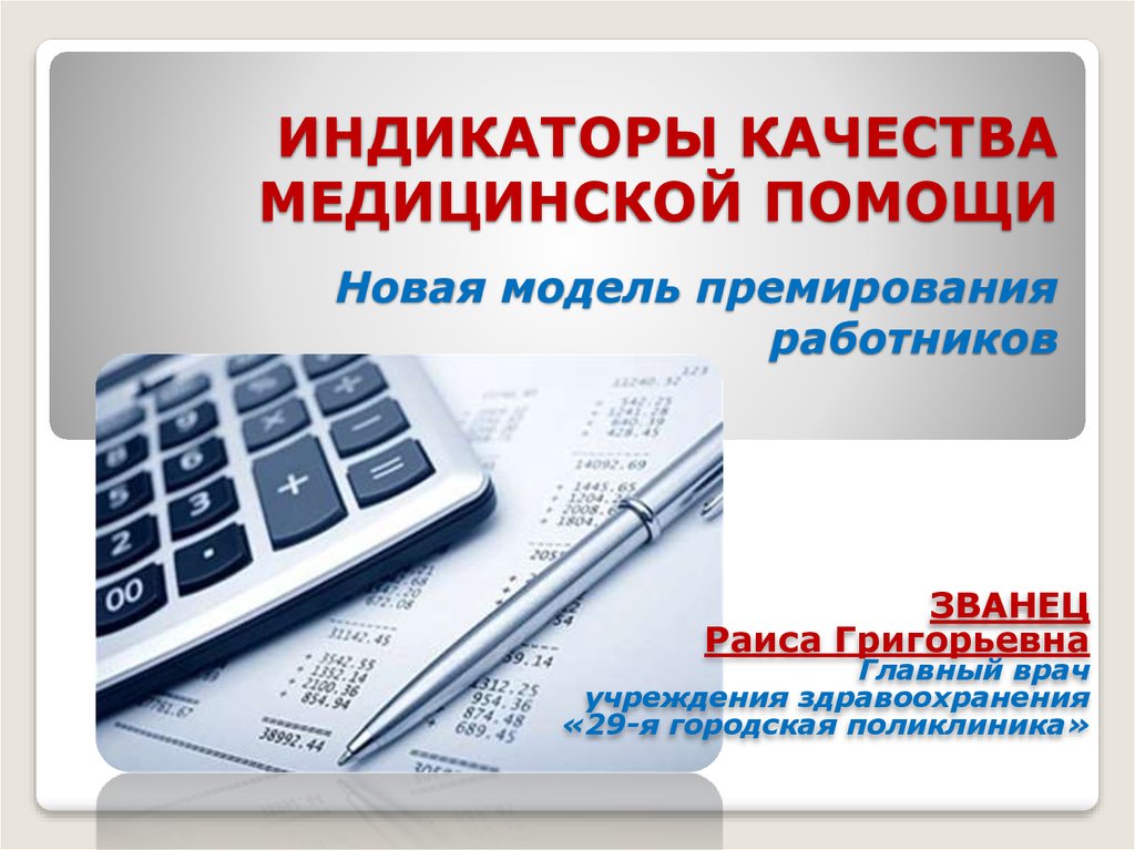 Индикаторы качества медицинской помощи. Новая модель премирования работников