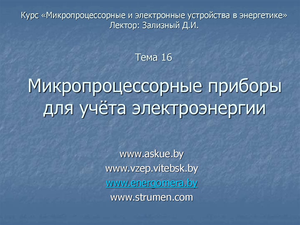 Курс «Микропроцессорные и электронные устройства в энергетике»Лектор: Зализный Д.И.