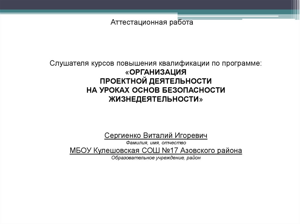 Аттестационная работа. Организация проектной деятельности на уроках основ безопасности жизнедеятельности