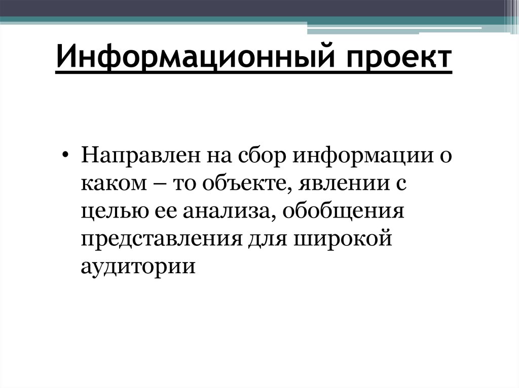 Информационный проект• Направлен на сбор информации о