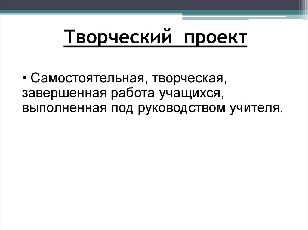 Творческий проект• Самостоятельная, творческая,