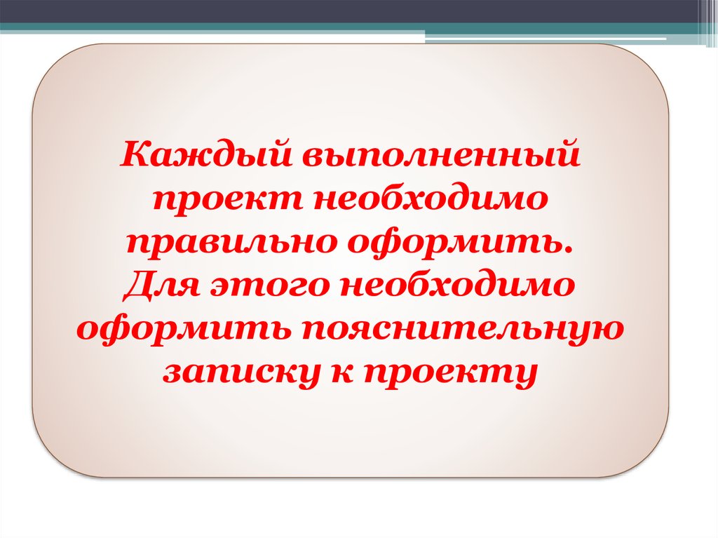 Каждый выполненныйпроект необходимо