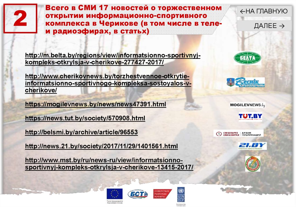 5. Создание условий использования существующей инфраструктуры г. Черикова Могилёвской области по повышению физической активности